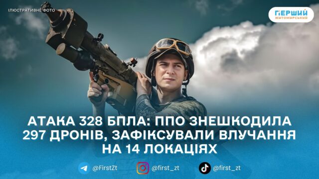 За попередніми даними станом на 12:30, протиповітряною обороною збито або подавлено 297 ворожих БпЛА. У Повітряних Силах також повідомили, що внаслідок активної протидії Сил оборони ворожі ракети не досягли цілей, інформація уточнюється.