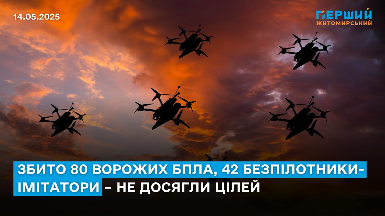 Станом на 09:00 ранку було підтверджено збиття 80 ударних дронів Shahed і безпілотників інших типів у різних регіонах — на сході, півночі, заході та в центрі України. Ще 42 безпілотники-імітатори не досягли цілей і були локаційно втрачені — тобто зникли з радарів без завдання шкоди.