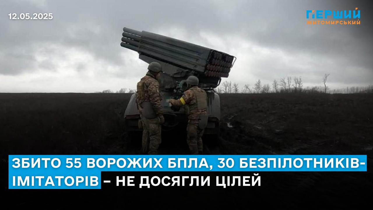 Станом на ранок 12 травня українські захисники повідомили про знищення 55 ворожих Shahed на сході, півночі, півдні та в центрі країни. Ще 30 безпілотників-імітацій були «локаційно втрачені».
