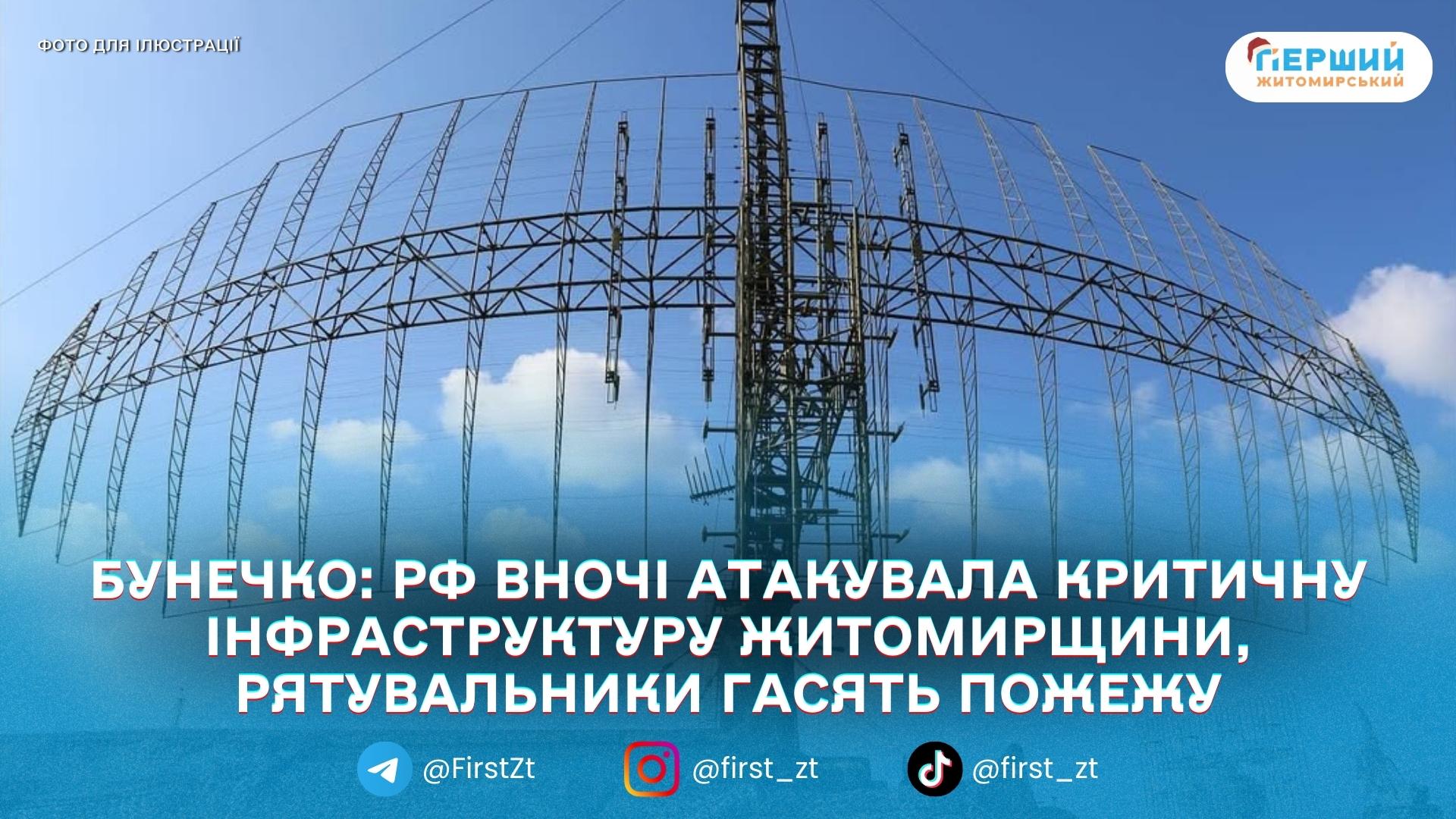 Начальник Житомирської ОВА Віталій Бунечко повідомив, що ворог продовжує атакувати критичну інфраструктуру Житомирщини. За його словами, вночі під ударами опинилися кілька об’єктів у Коростенському та Звягельському районах.