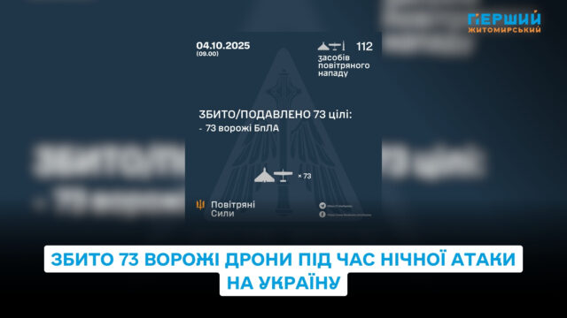 У ніч на 4 жовтня українська протиповітряна оборона збила 73 ворожі дрони під час чергової масованої атаки Росії. Про це повідомили у Повітряних Силах Збройних Сил України.
