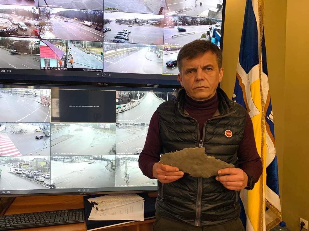 Також мер Житомира показав учасникам засідання ОБСЄ уламок бомби, що влучила в міську лікарню №2 та житлові будинки поруч.