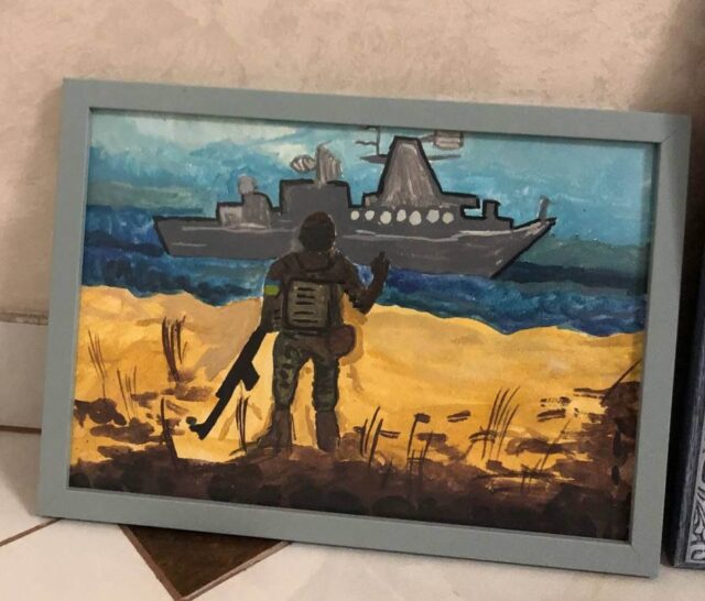 «Матвію загалом подобається репертуар гурту «Океан Ельзи», декілька пісень він добре знає та наспівує. Одна із найулюбленіших – «Не твоя війна» (… гілля калин похилилося…), яку він навіть розучив на заняттях та дуже сподівався почути на концерті, – ділиться Анна Савіцька. – Також Матвій знає про громадську позицію Святослава, його виступи на передовій, допомогу захисникам (кошти від продажу квитків на благодійні концерти в рамках туру містами підуть на потреби бригад ЗСУ, НГУ та Сил Оборони України), тож, збираючись на благодійний виступ, вирішив подарувати свій малюнок. Спеціально нічого не малював. Обрав роботу, на якій зображено всім відомий образ про напрямок для російського корабля. Вона була створена у розпал повномасштабної війни десь рік тому. Загалом концерт умовно був поділений на дві частини, коли Святослав грав на гітарі, як це зазвичай відбувається під час візитів до воїнів на передову, а потім акомпанував собі на роялі. Ми слухали, насолоджувалися музикою, емоціями і атмосферою. Син сказав, що подарує малюнок після композиції, яка його найбільше зачепить. І от на пісні про оберіг він запропонував підійти ближче до сцени, аби й вручити малюнок. Звичайно, нам обом було дуже приємно, але, думаю, що для сина, попри його юний вік, це без сумніву стане одним із пам’ятних моментів на усе життя. Матвій щасливий, що побував на концерті і що його малюнок сподобався Святославу».