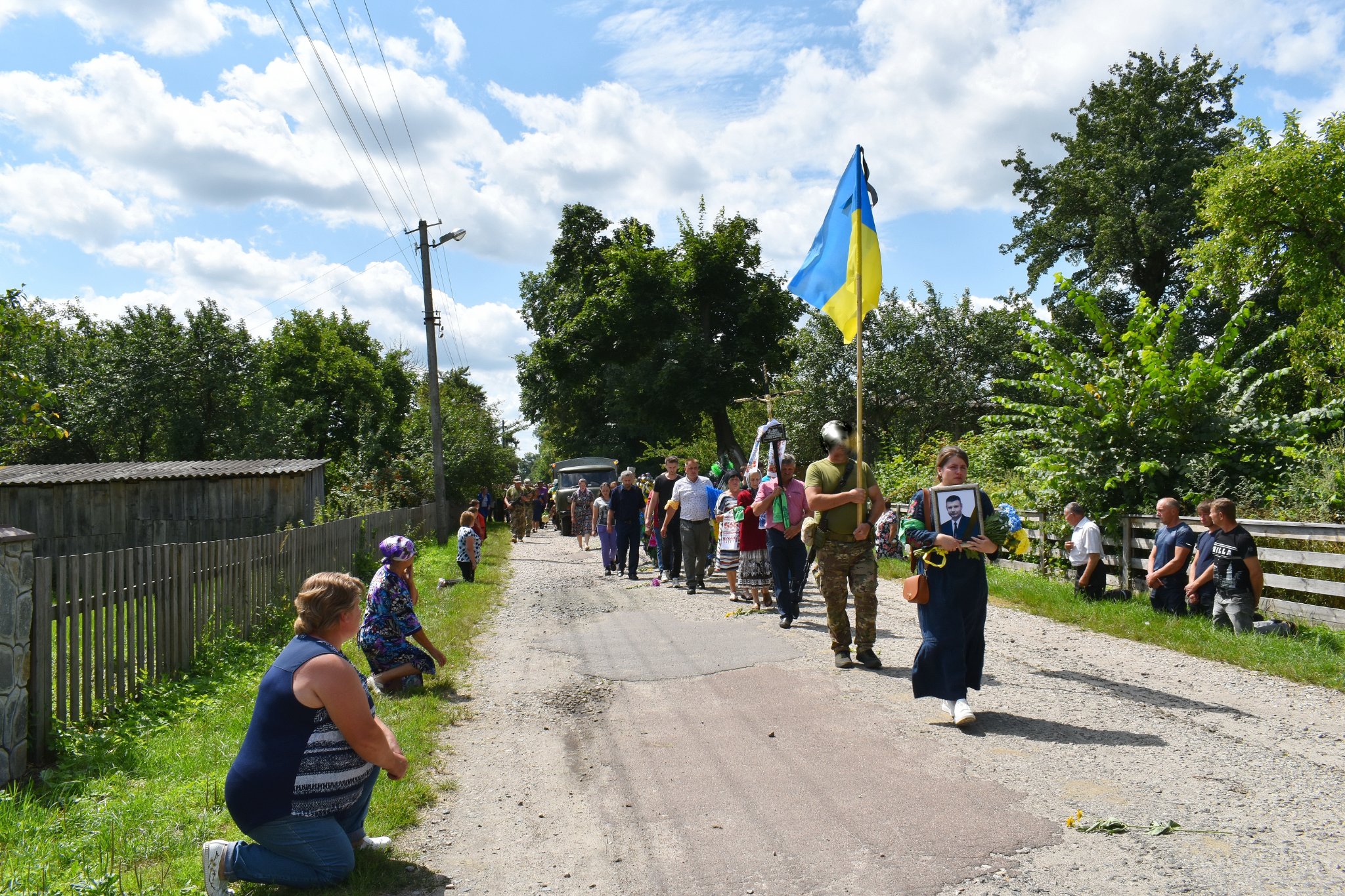 28 липня військового проводжало все село – люди утворили коридор пошани, ставши на коліна та розкинувши квіти.