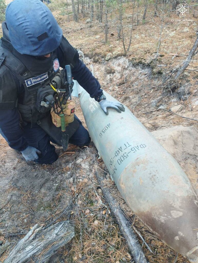 У Коростенському районі рятувальники 17 жовтня знешкодили сучасну авіабомбу ФАБ-500, що виявили напередодні лісники поблизу с. Васьківці Народицької громади.