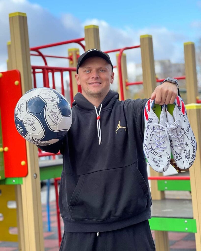 Минулого тижня з аукціону Артем продав за 12 000 гривень боксерську рукавичку чемпіона світу Олександра Усика. Ці кошти розділив між трьома житомирськими волонтерами, які також допомагають військовим.