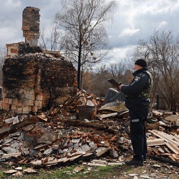 “Слідчі поліції працюють і на згарищах, які до 24 лютого були затишними садибами або батьківськими будинками жителів інших регіонів, зокрема столиці. У с. Новій Радчі, ймовірно, навмисно спалені окупантами окремі хати, у с. Давидках – вогнем зруйновані цілі вулиці. Усередині них, а також у вцілілих приватних будинках також побували окупанти, які, вочевидь, шукали харчі, «трофеї» з України або просто розваг”.