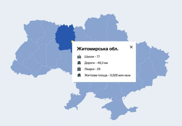 4 липня, в день конференцї в Лугано, де влада презентувала план відбудови України, запрацювала інтерактивна мапа руйнувань українських шкіл, лікарень, доріг та квадратних метрів площі, яких завдала росія.