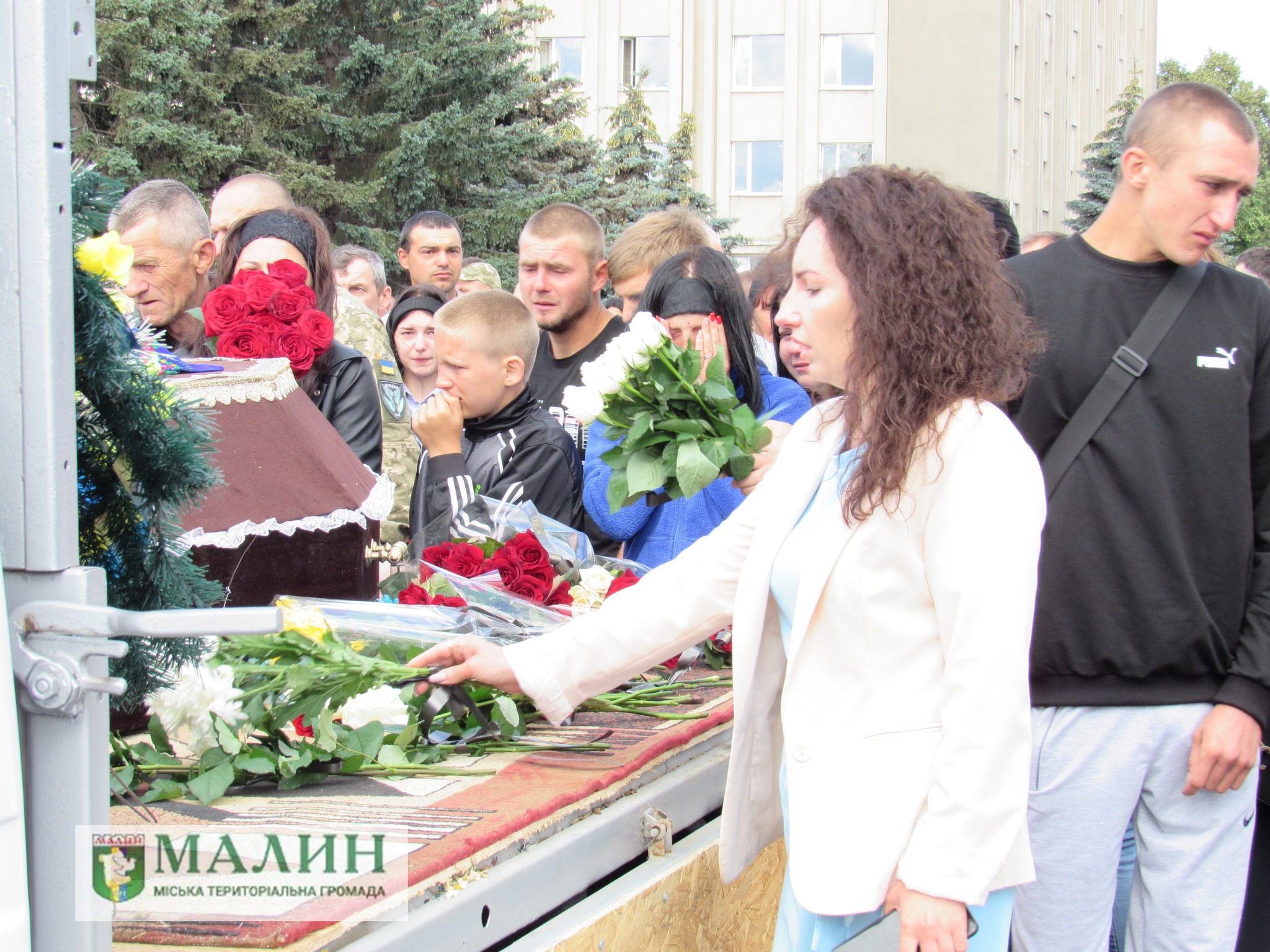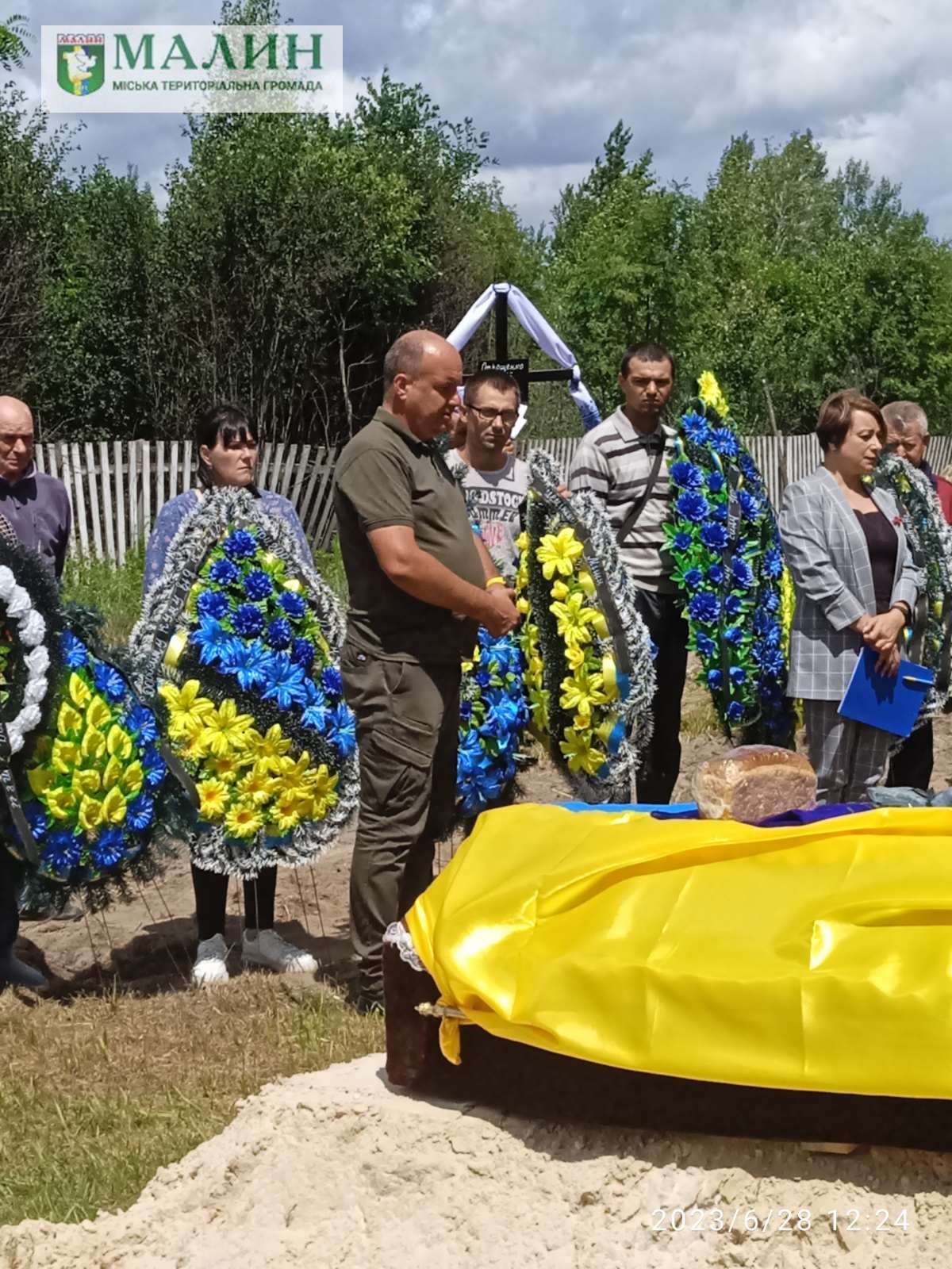 “Сьогодні свій останній спочинок у рідній землі знайшов ще один наш Захисник – Віталій Петрович Отрощенко. Воїн загинув 20 червня 2023 року під час штурмових дій поблизу н.п. Велика Новосілка Волноваського району Донецької області. Почесним коридором пам’яті проводжали Віталія Петровича в останню дорогу у Малині. Мітинг прощання та чин поховання відбулися у с. Старі Вороб’ї Малинської громади“.