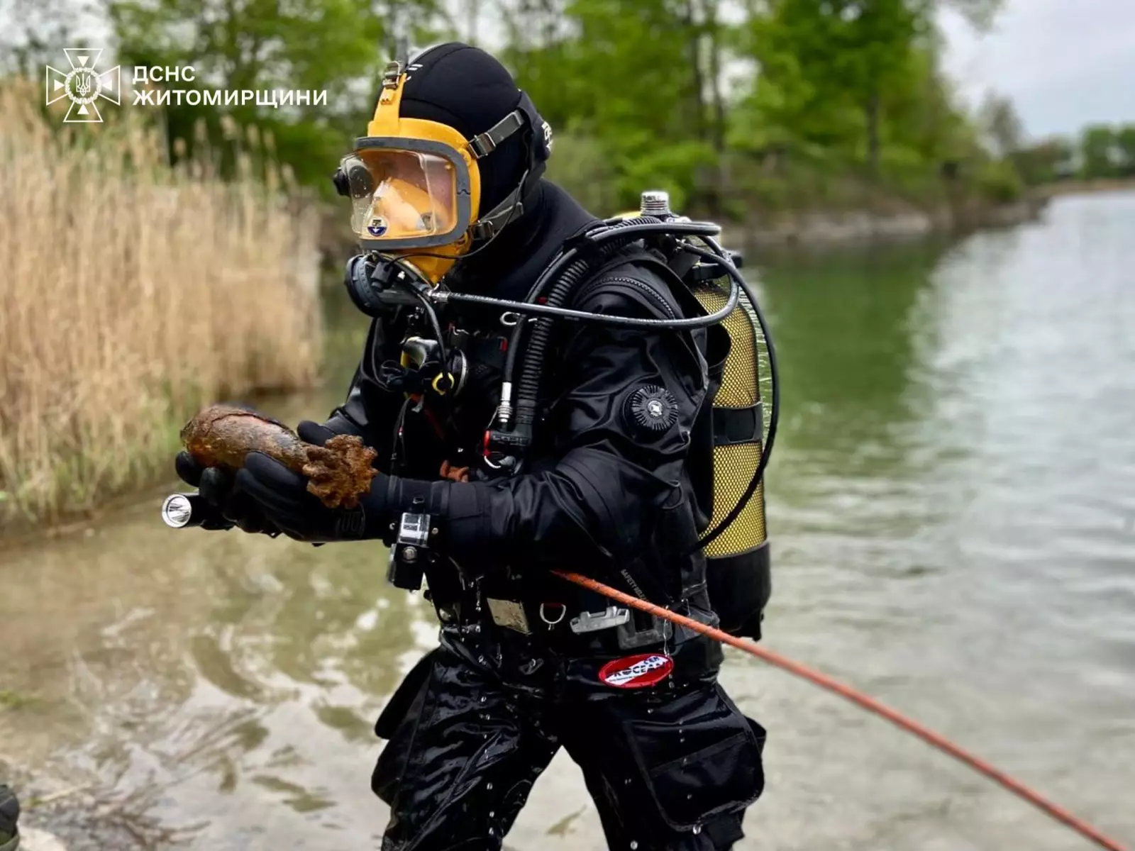 Після підняття на поверхню, небезпечні знахідки були передані житомирським піротехнікам, які знешкодили боєприпаси у спеціально визначеному місці.