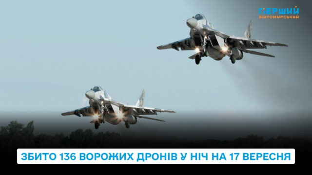 У ніч на 17 вересня противник здійснив одну з наймасованіших атак останніх тижнів. З території росії та тимчасово окупованого Криму було випущено 172 ударні безпілотники типу Shahed, «Гербера» та інших моделей, а також балістичну ракету «Іскандер-М/KN-23» і зенітну керовану ракету С-300. Про це повідомили в Повітряних Силах ЗСУ.