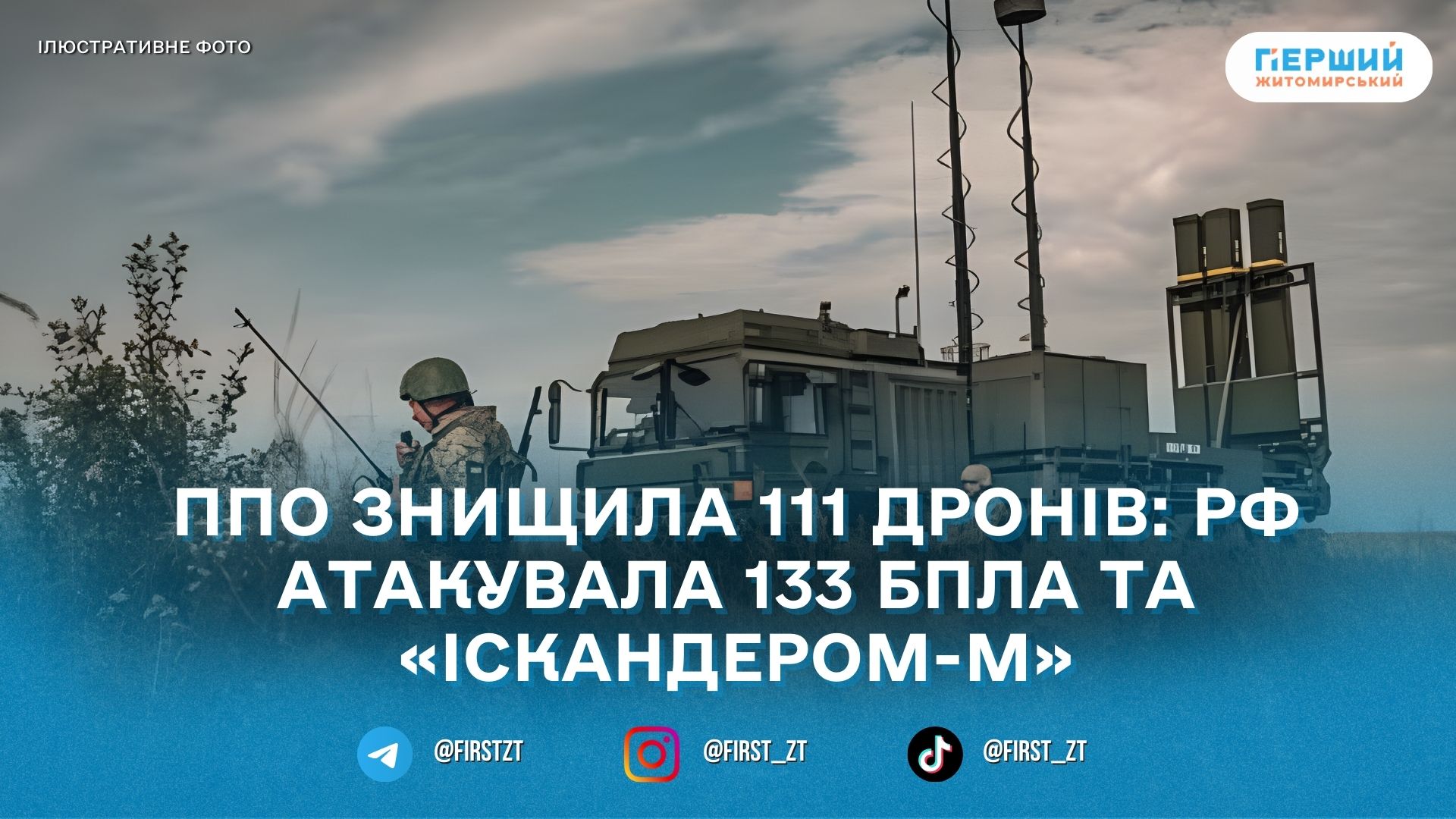 Станом на 08:30 протиповітряна оборона збила або подавила 111 ворожих БпЛА. Також зафіксовано влучання ракети та 19 ударних дронів на 16 локаціях. Ще на одній локації повідомили про падіння уламків збитих цілей.