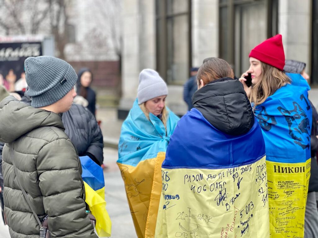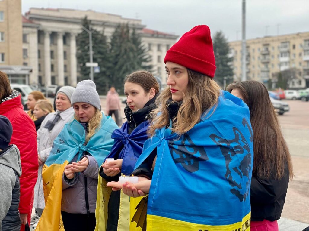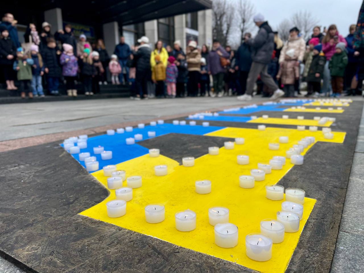 У другу річницю трагедії в театрі Маріуполя, коли росіяни скинули бомби на його будівлю і під завалами опинилися сотні людей, житомиряни зібралися в центрі міста, аби вшанувати пам’ять загиблих від ворожого удару 16 березня та усіх тих, хто загинув за період війни, починаючи з 2014-го. Зокрема, акцію спільними зусиллями влаштував Житомирський академічний музично-драматичний театр ім. Івана Кочерги із колегами з Житомирського академічного театру ляльок, а долучитися могли усі охочі.