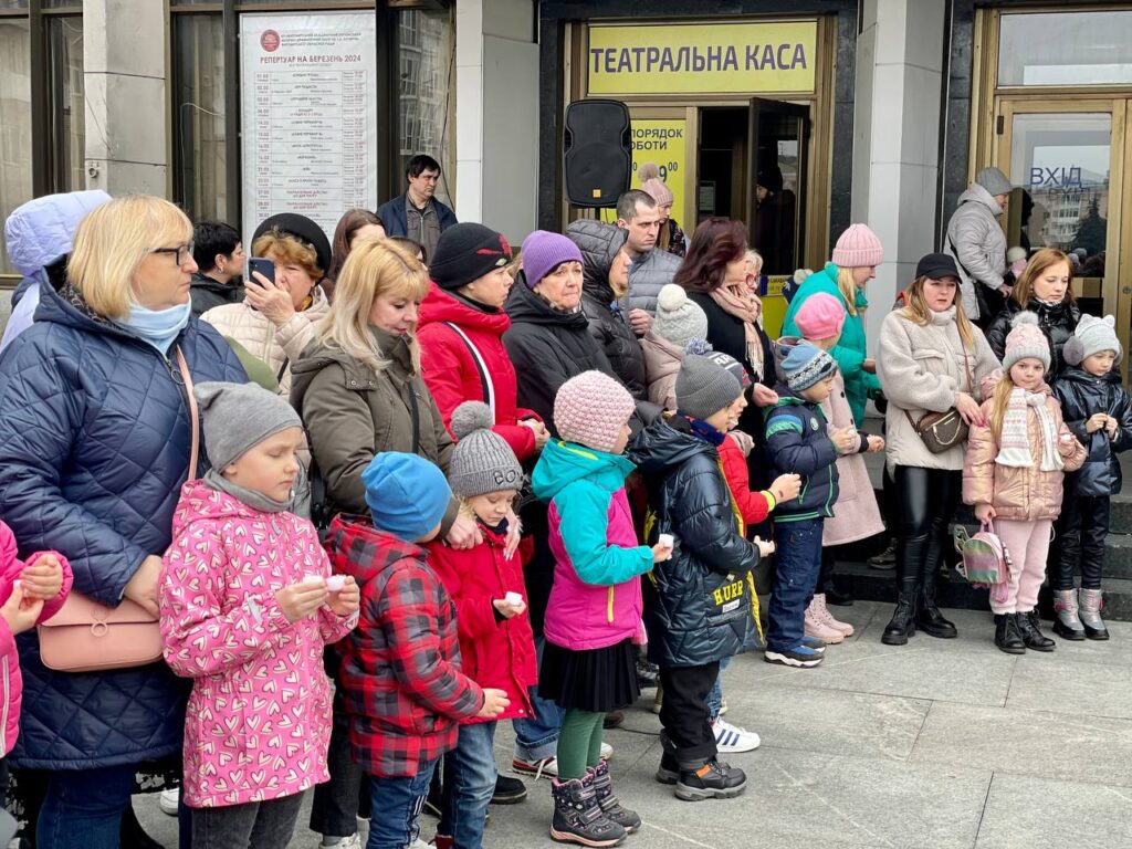 Лише за приблизними підрахунками в театрі могло загинути щонайменше 600 осіб, але офіційних даних про жертв нема, оскільки Маріуполь і досі перебуває в тимчасовій окупації. Житомиряни вшанували пам’ять загиблих хвилиною мовчання і встановили запалені свічки на символічний напис “Діти”. Після цього у театрі зіграли дитячу виставу, на яку запросили дітей ВПО, яких прийняла громада Житомира.