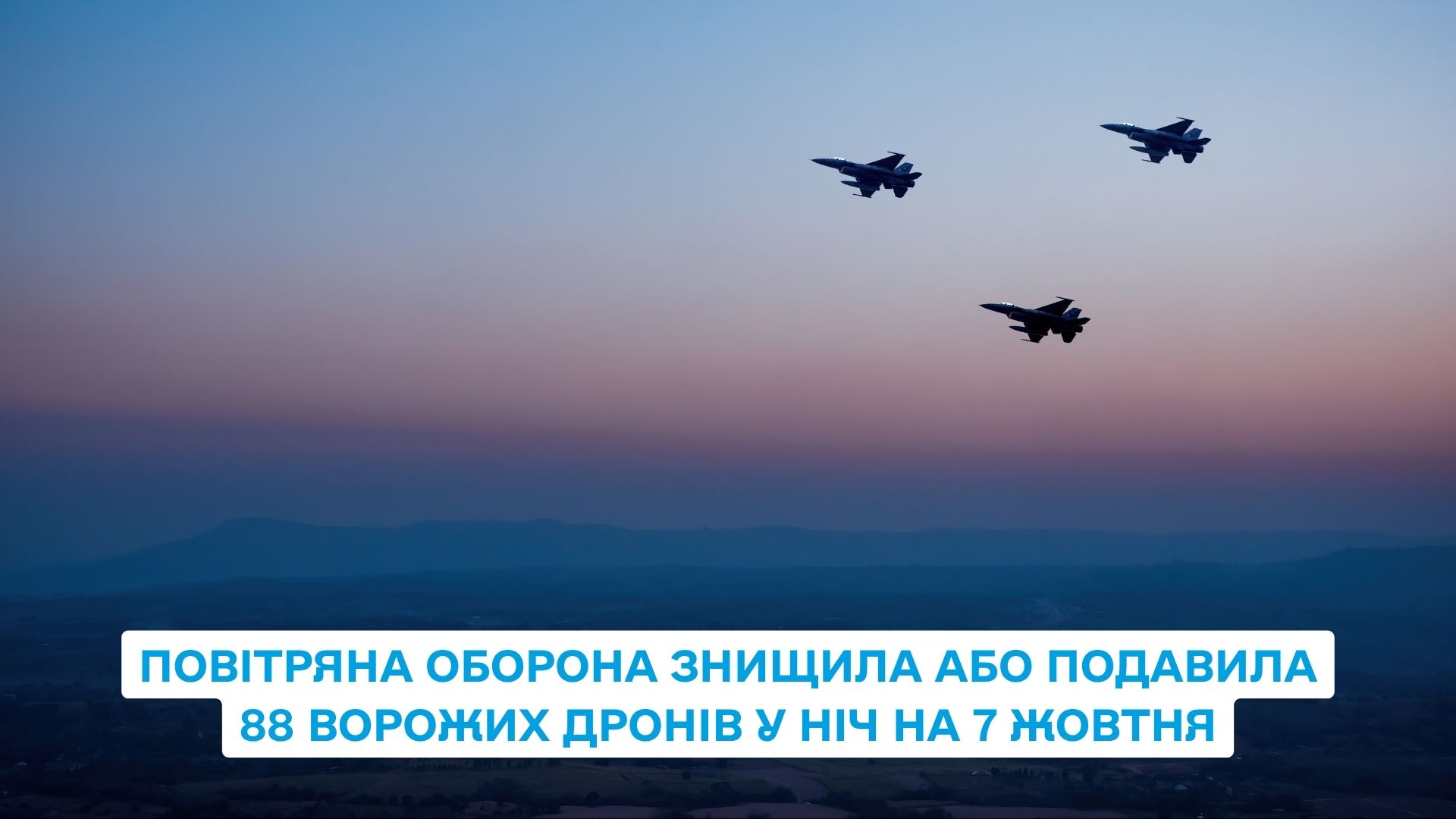 За попередніми даними станом на 09:00, знищено або подавлено 88 ударних дронів на півночі та сході країни.