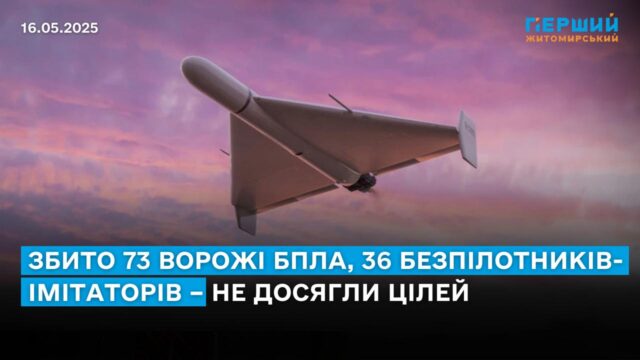 Станом на 9:00 16 травня, сили оборони знищили 73 ударних дрони Shahed та безпілотники інших типів. Ураження фіксувалися на сході, півночі, півдні та в центрі країни.