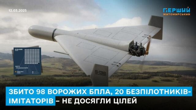За попередніми даними станом на 09:30, було збито 98 ударних безпілотників типу Shahed та інших типів у 14 областях України: Харківській, Полтавській, Сумській, Чернігівській, Черкаській, Київській, Житомирській, Хмельницькій, Вінницькій, Тернопільській, Рівненській, Дніпропетровській, Запорізькій, Одеській та Херсонській.