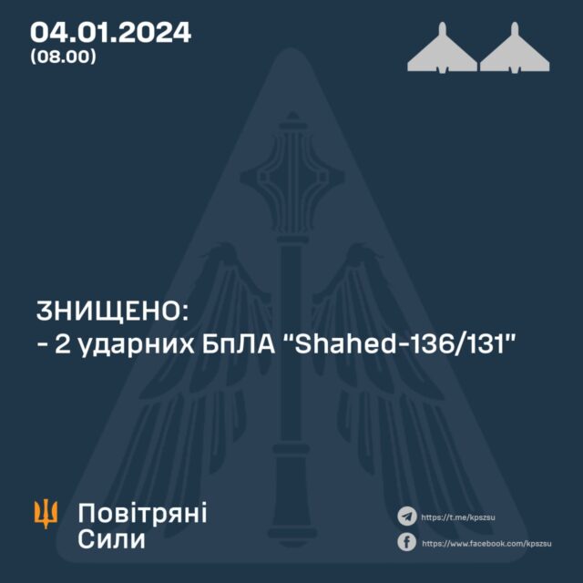Home Війна Повітряні Сили знищили два “шахеди” вночі 4 січня ВійнаЛюдиПодії Повітряні Сили знищили два “шахеди” вночі 4 січня 04.01.2024 - 10:22 FacebookWhatsAppTelegramCopy URL У ніч на 4 січня 2024 року ворог атакував двома ударними БпЛА типу «Shahed-136/131» з південно-східного напрямку. Обидва – знищені на Хмельниччині. Підписуйтесь на «Перший Житомирський» у соцмережах:TelegramFacebookInstagramYouTubeTikTok