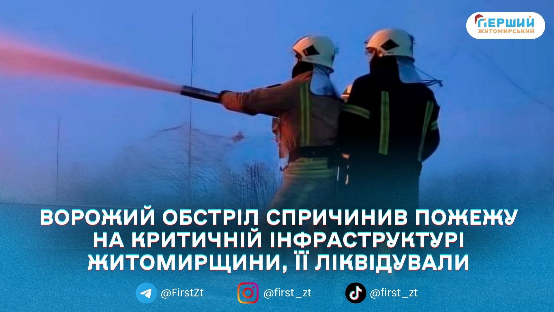 Як ми повідомляли раніше, російські війська вдруге за дві доби атакували кілька об’єктів критичної інфраструктури Житомирщини. Унаслідок обстрілу виникла пожежа, яку рятувальники ліквідували. Про це повідомили в ГУ ДСНС у Житомирській області.