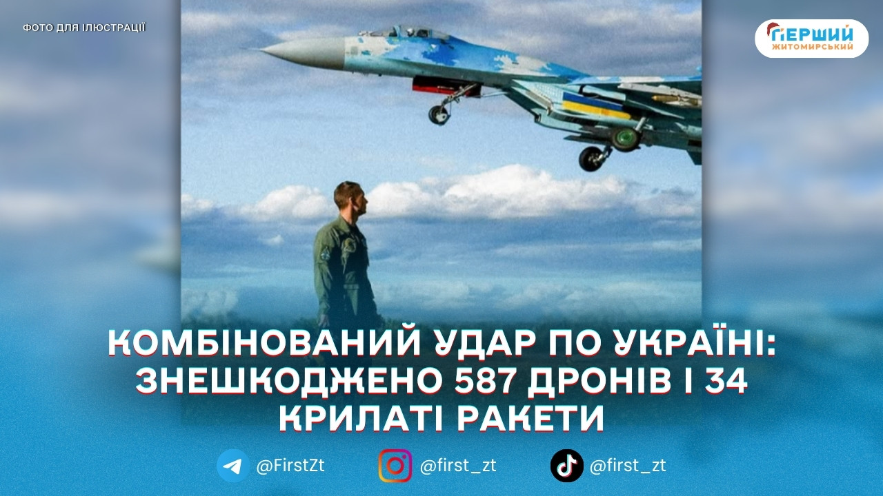 Станом на 11:30 протиповітряною обороною збито або подавлено 621 повітряну ціль: 587 БпЛА та 34 крилаті ракети.