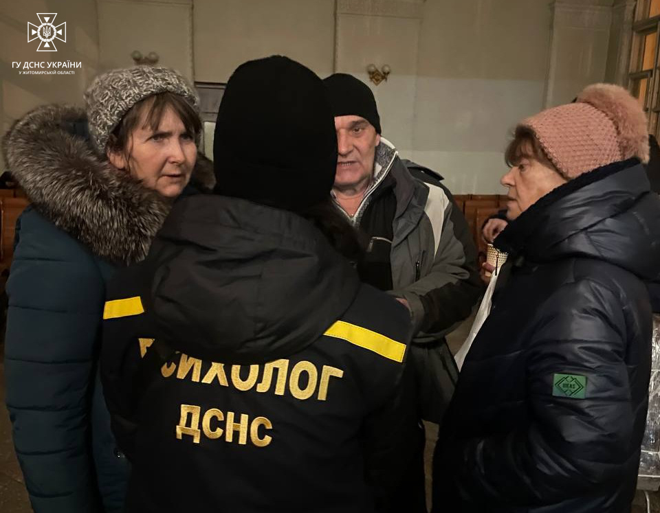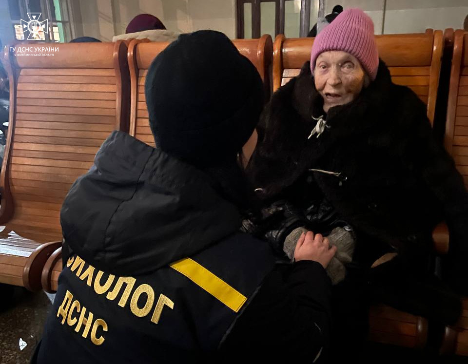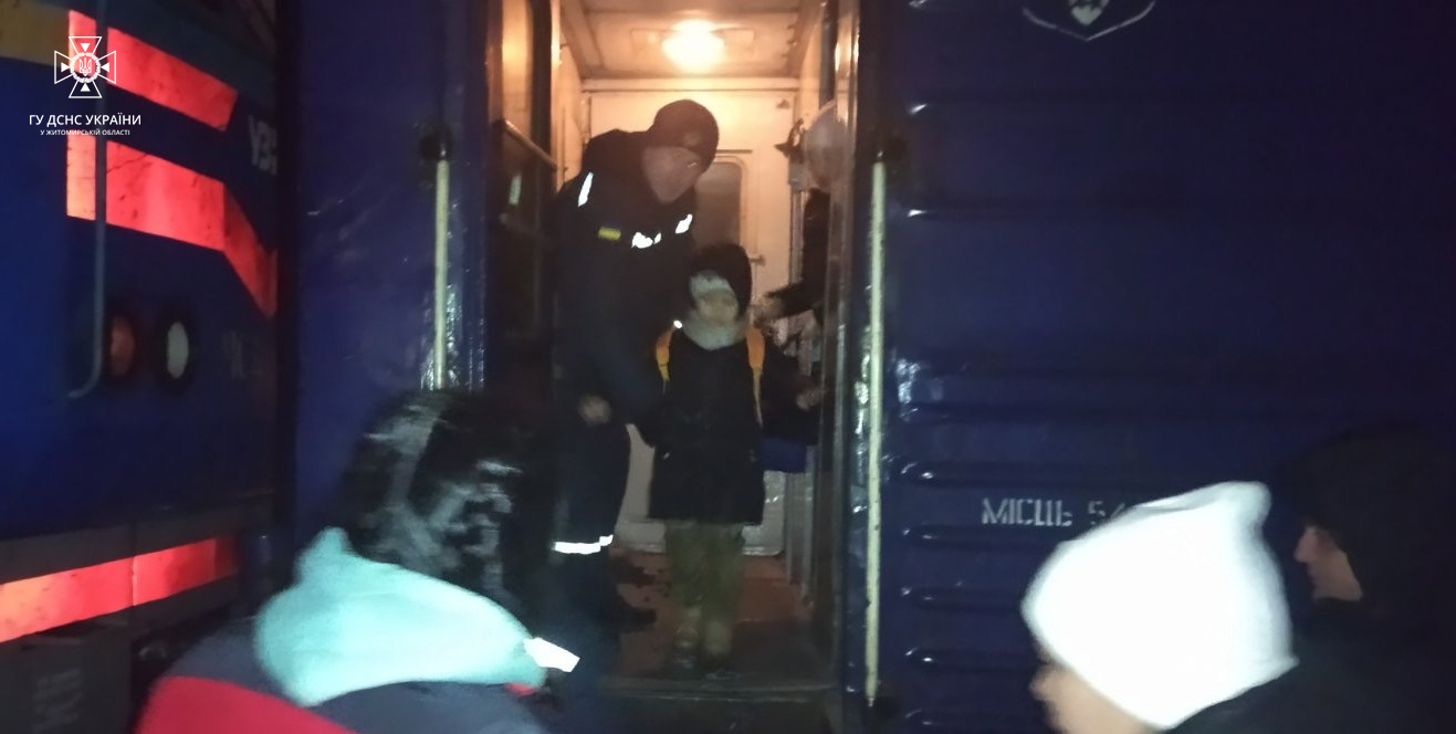 “Разом з рятувальниками на залізничному вокзалі були присутні правоохоронці, представники благодійної організації «Карітас України» та Товариства Червоного Хреста України. В залі очікування для прибулих влаштували зону відпочинку, також там вони могли випити чаю, поспілкуватися з психологами та отримати допомогу. Згодом рятувальники доправили переселенців до автотранспорту, призначеного для подальшого транспортування їх до місць тимчасового проживання на територіях Звягельського, Бердичівського та Житомирського районів.” повідоляють фахівці ДСНС у Житомирській області