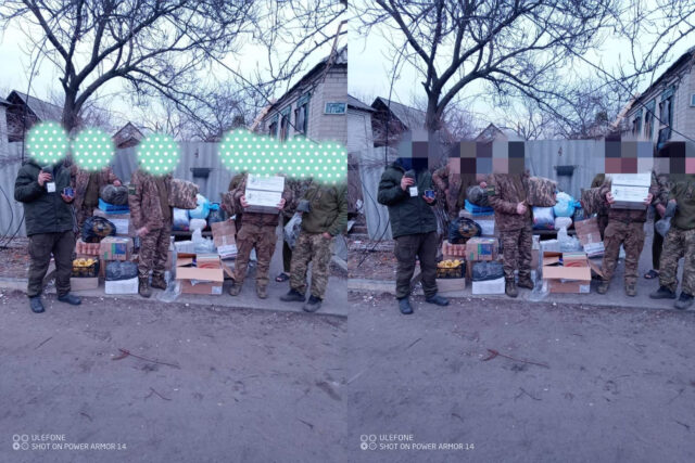 “Друзі, 25 січня, ми з вами відправили багато смаколиків і потрібних речей нашим ЗСУ.Сьогодні все у хлопців. Багато фото не буде, бо кожні 5 хв обстріли. На самий нуль доїхали наші передачі від мешканців сіл: Луки,Млинище, Озерного, Новогуйвинське. Бійці з житомирської бригади 95 бригади отримали смаколики, а саме: речі, грілки, окопні свічі, оптику, посуд, ковдри, медицину тощо“.