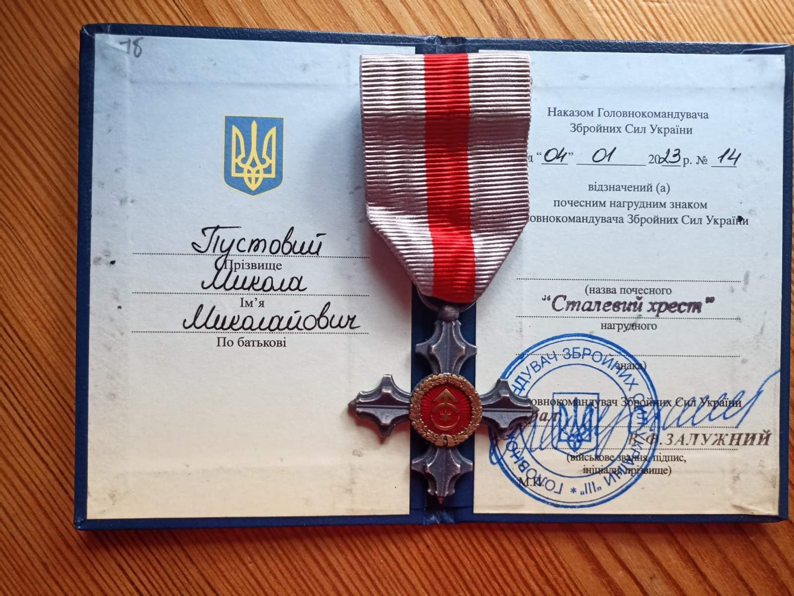 Довідково. «Сталевий хрест» – це відзнака від Головнокомандувача Збройних Сил України Валерія Залужного. У центрі «Сталевого хреста» розташований герб князів Острозьких. Саме князь Острозький відомий перемогою над московським військом під Оршею в 1514 році.