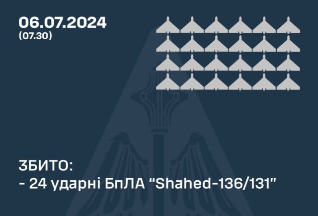 У ніч на 6 липня 2024 року ворог завдав удару 27-ма ударними БпЛА типу «Shahed-131/136» із Криму та Курської обл. – рф.
