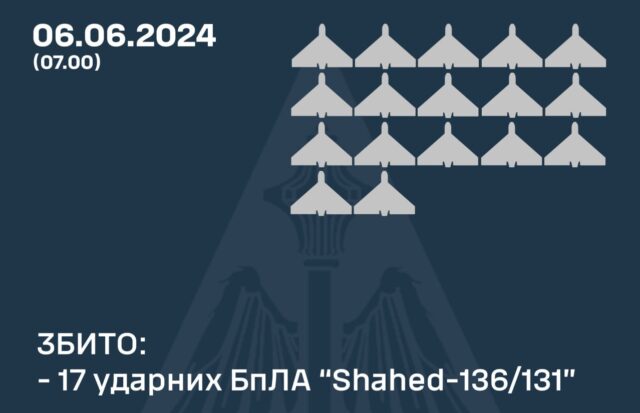 У ніч на 6 червня російські окупанти завдали удару по Дніпропетровщині двома ракетами «Іскандер-М» та 18-ма безпілотниками «Shahed-131/136» з районів Приморсько-Ахтарська та Криму.