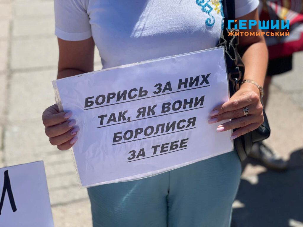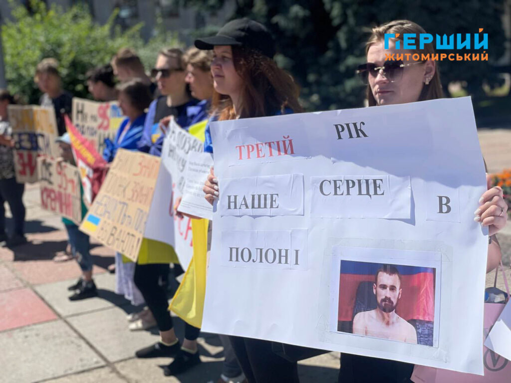 На майдані Корольова в Житомирі о 14.00 6 липня стартувала вже традиційна акція на підтримку полонених військовослужбовців і воїнів, які мають статус «зниклі безвісти». Такі у Житомирі та інших містах країни проходять один чи кілька разів на місяць. Сюди приходять рідні і друзі захисників, аби нагадати громадськості і владі про те, що тисячі українців досі перебувають у російському полоні, де кожен день – «пекло». Їх потрібно звільняти негайно. «Полонених – повернути, зниклих – знайти. Байдужість – вбиває», – скандує колона, рухаючись Михайлівською у бік Київської. У руках тримають національні прапори, портрети військових, плакати із закликами.