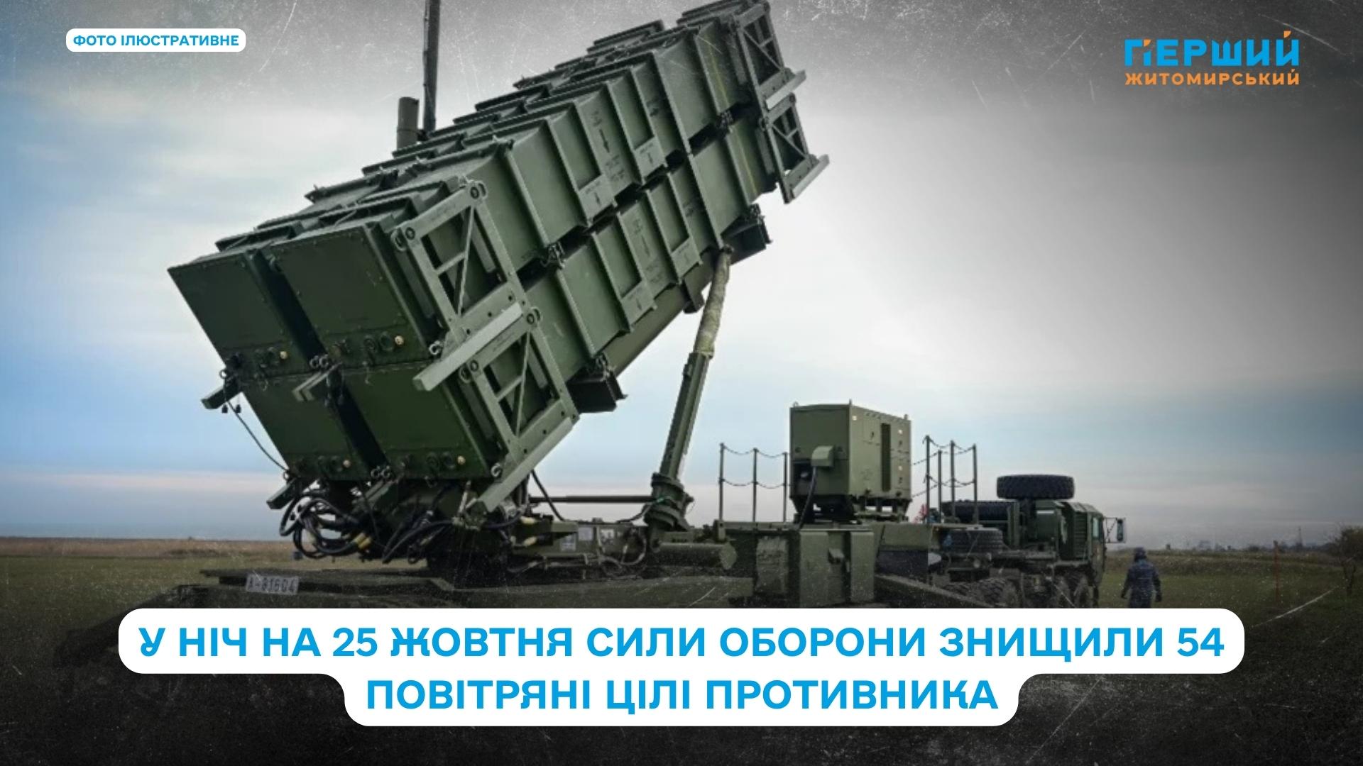 У ніч на 25 жовтня російські війська здійснили масовану комбіновану атаку по території України, використавши 9 балістичних ракет “Іскандер-М” та 62 ударні безпілотники типу Shahed, «Гербера» та інших моделей.