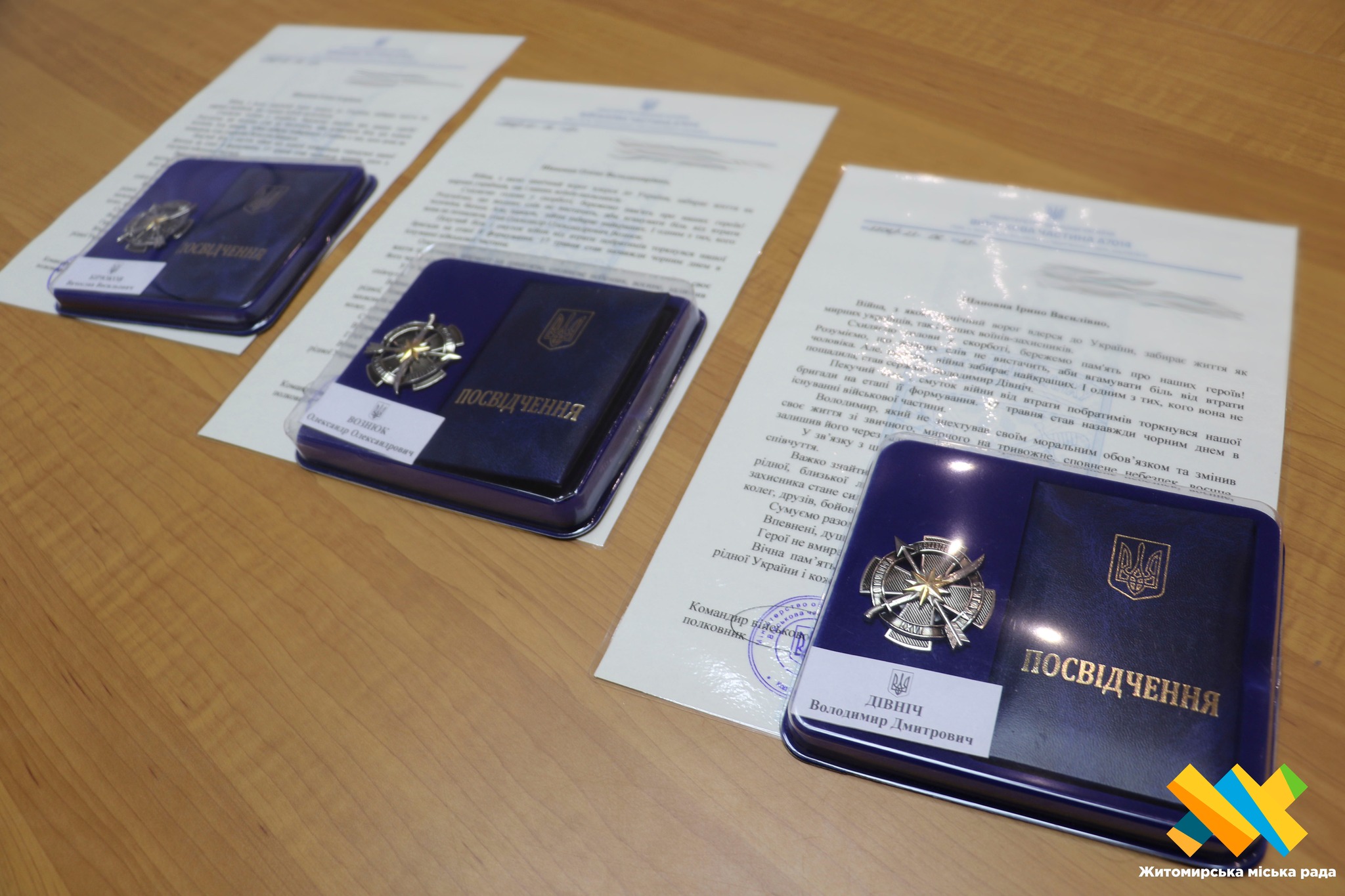 У Житомирі 12 липня вручили відзнаки дітям та близьким загиблих Героїв. Усі троє військових загинули 17 травня 2022 року під час ракетного удару по навчальному центрі “Десна”.