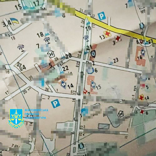 Зокрема, збирав інформацію про розташування у Житомирі стратегічно важливих військових об’єктів, місця дислокації підрозділів військовослужбовців і військової техніки ЗСУ. Добуті відомості наносив на карту, фотографував і передавав зображення ворогу для можливого використання під час планування та ведення бойових дій”.