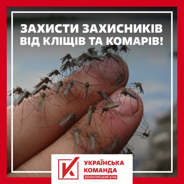 Волонтерський штаб «Українська команда» оголосила терміновий збір на засоби захисту від комарів та кліщів для захисників на передовій. Про це повідомляється на Facebook-сторінці штабу.