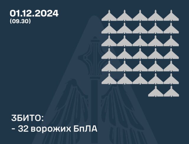 У ніч на 1 грудня 2024 року, починаючи з 20:00 30 листопада, російські війська здійснили масштабну атаку на Україну, використовуючи 78 ударних дронів типу «Shahed» та безпілотники невстановленого типу. Напад було здійснено з території рф, зокрема з напрямків Курськ, Орел та Брянськ. Про це повідомляють Повітряні сили ЗС України.
