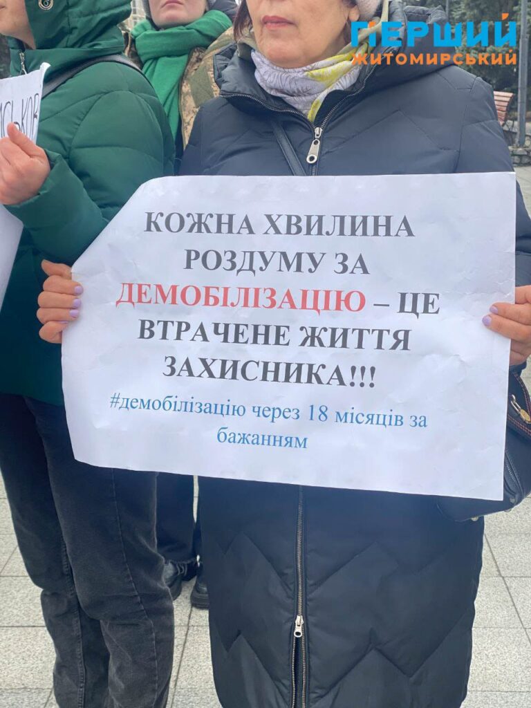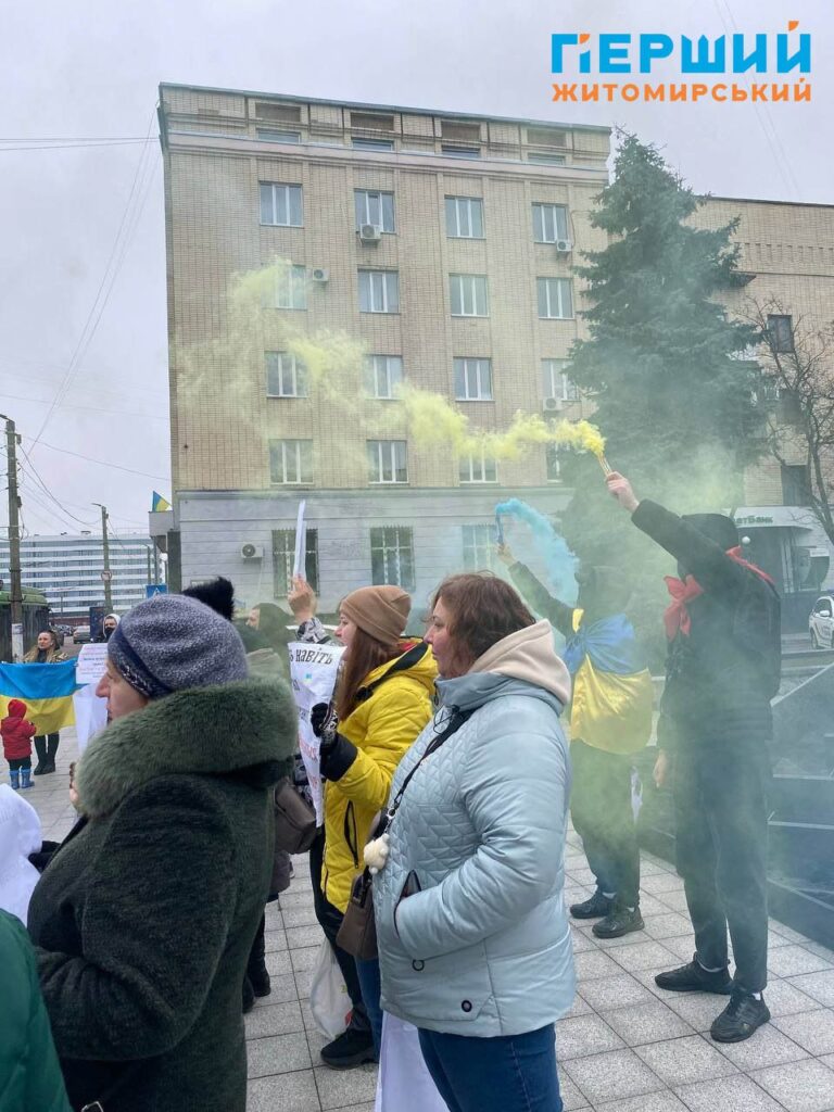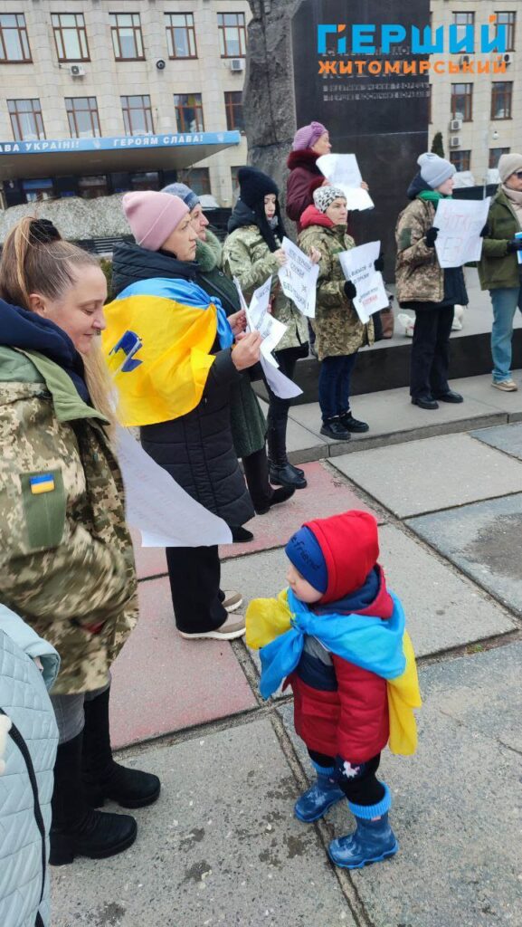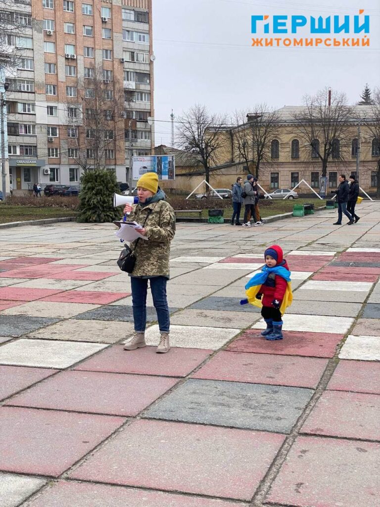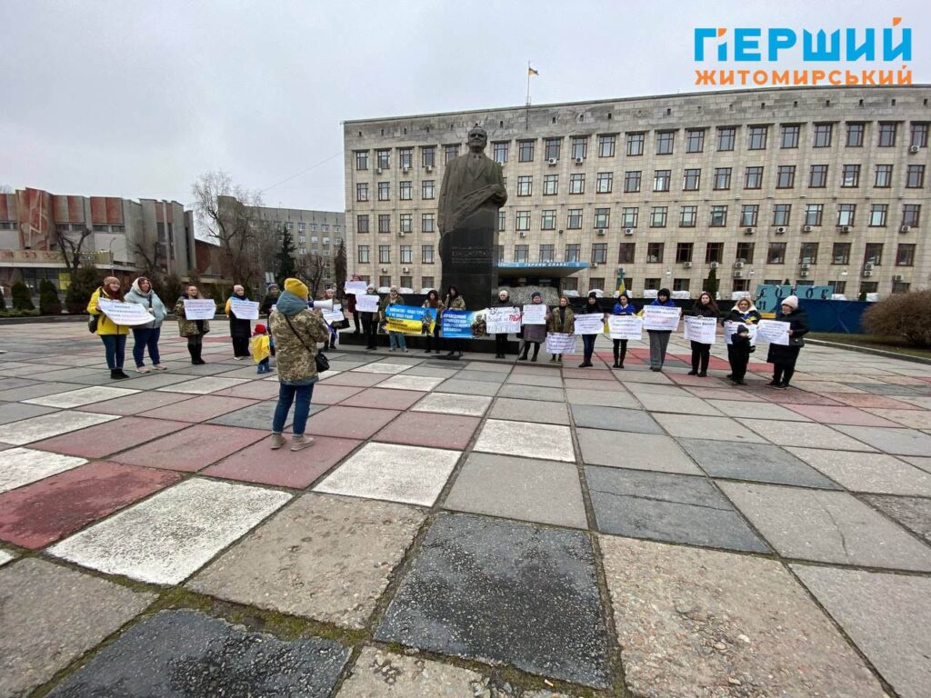 25 лютого, близько 30 учасників, включаючи дворічного Андрія, разом з рідними та друзями захисників, взяли участь у мирній акції в місті. Про це Першому житомирському розповіла Аліна Кундіч, учасниця мирного пікету.