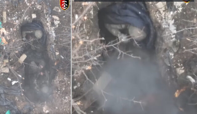 “На позиціях під Бахмутом два російських вояки вирішили перепочити – один дрімав, інший покурював… Вони, схоже, забули, що в Україні їм зовсім не раді. Але оператор дрону 30 ОМБр нагадав про це. Тепер обоє – “достроково демобілізовані”, – пише бригада.