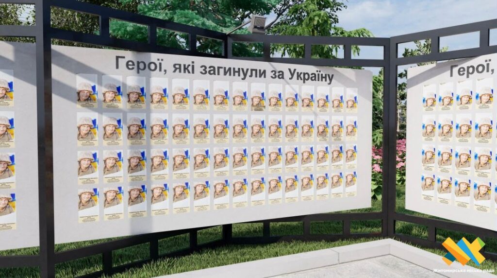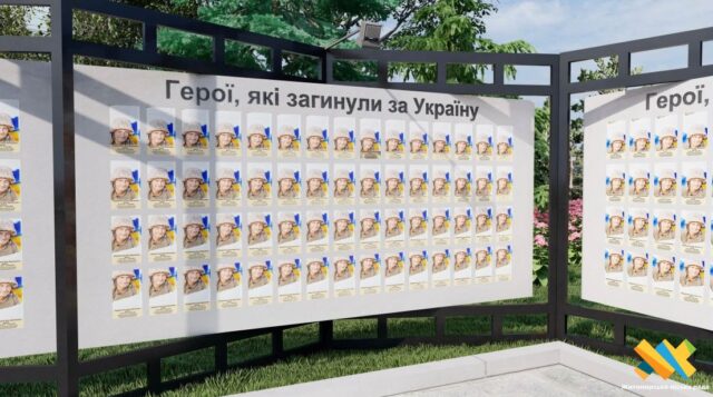 “Департаментом містобудування та земельних відносин розроблено ескіз металевої конструкції, яка буде розміщена на місці вшанування пам’яті загиблих захисників і захисниць України. Це буде (виготовлено прим.) 12 секцій, встановлено 10. На одній секції буде розміщено близько 60 фотографій, по хронології, починаючи з 2014-ого року. Фото були зібрані у форматі А4. Внизу буде зазначено ім’я та прізвище загиблого Героя, дата народження та дата смерті”, – говорить заступниця начальника управління у справах війни міськради Олена Іванисько.