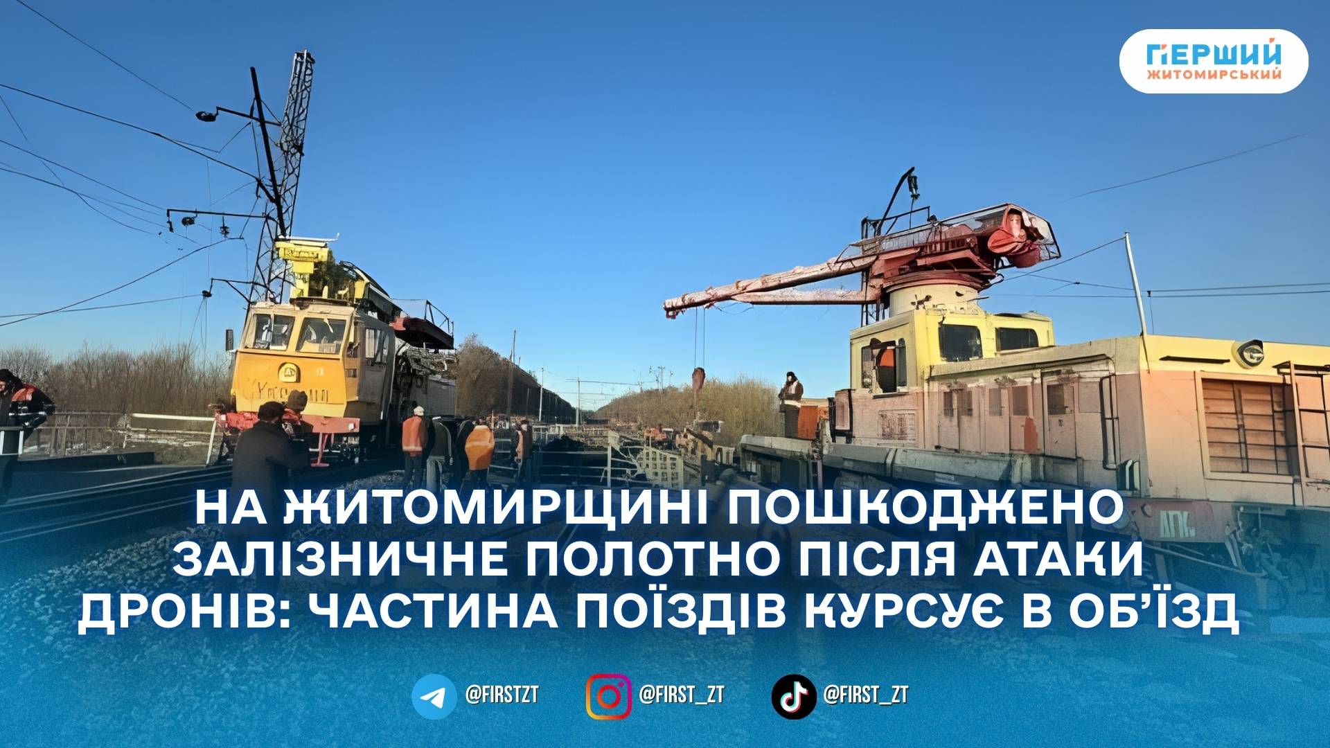 Як повідомили в Укрзалізниці, залізничники також проводили відновлювальні роботи на Вінниччині та Рівненщині — ремонтували колії, контактний дріт та опори. Однак саме на Житомирщині пошкодження виявилися найбільш серйозними.