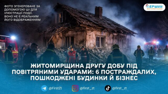 Внаслідок нічної повітряної атаки по Житомирщині поранено шість людей, серед них двоє дітей. За словами начальника Житомирської ОВА Віталія Бунечка, за попередньою інформацією, на території області зафіксовано кілька влучань або падіння уламків крилатих ракет та дронів-камікадзе.