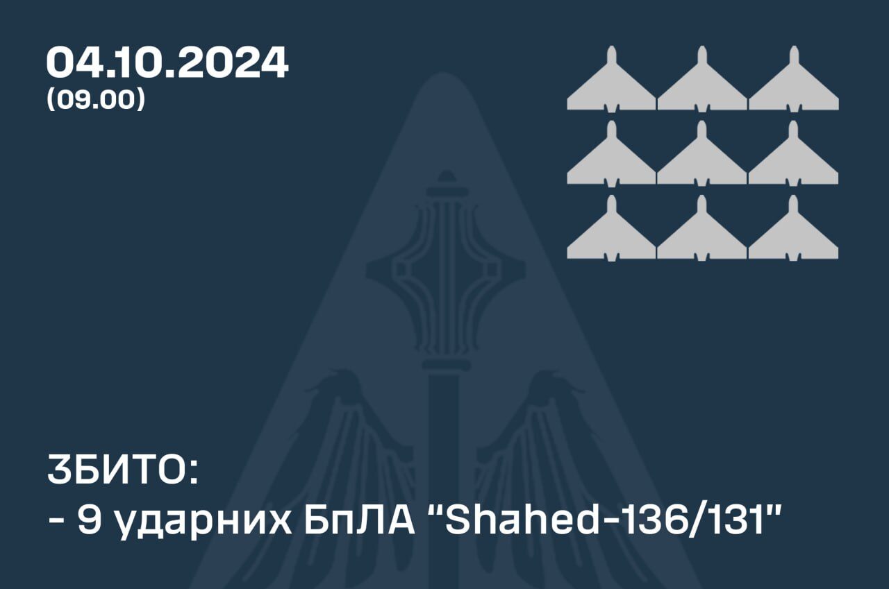 Уночі 4 жовтня 2024 року російські війська здійснили чергову атаку на об’єкти критичної інфраструктури України, використовуючи 19 ударних безпілотників типу «Shahed», які були запущені з території рф та тимчасово окупованого Криму.