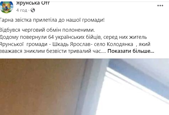 “Серед захисників, які повернулися додому є два мешканці нашого району. Це житель Дубрівської громади Володимир Тисячний та житель Ярунської громади Ярослав Шкадь, які вважалися зниклими безвісти тривалий час”, – інформують у громаді.