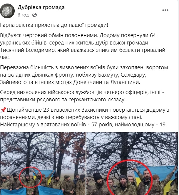 Вчора, 14 грудня, відбувся обмін полоненими. Двоє з захисників, які вступили на українську землю – мешканці Дубрівської та Ярунської громади. Захисників довгий час вважали зниклими, адже про них не було нічого відомо.