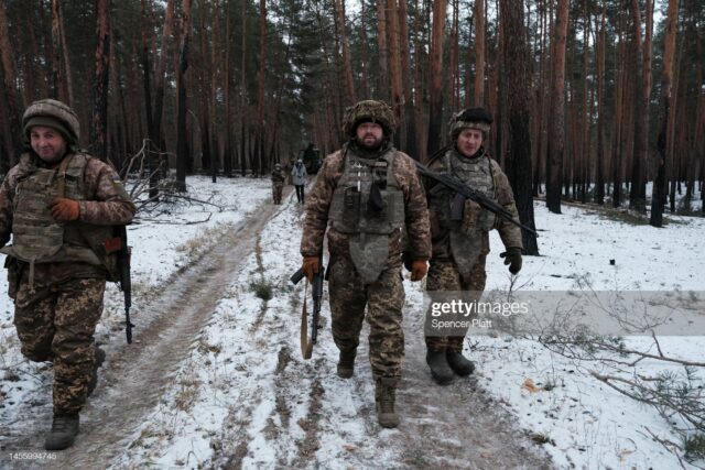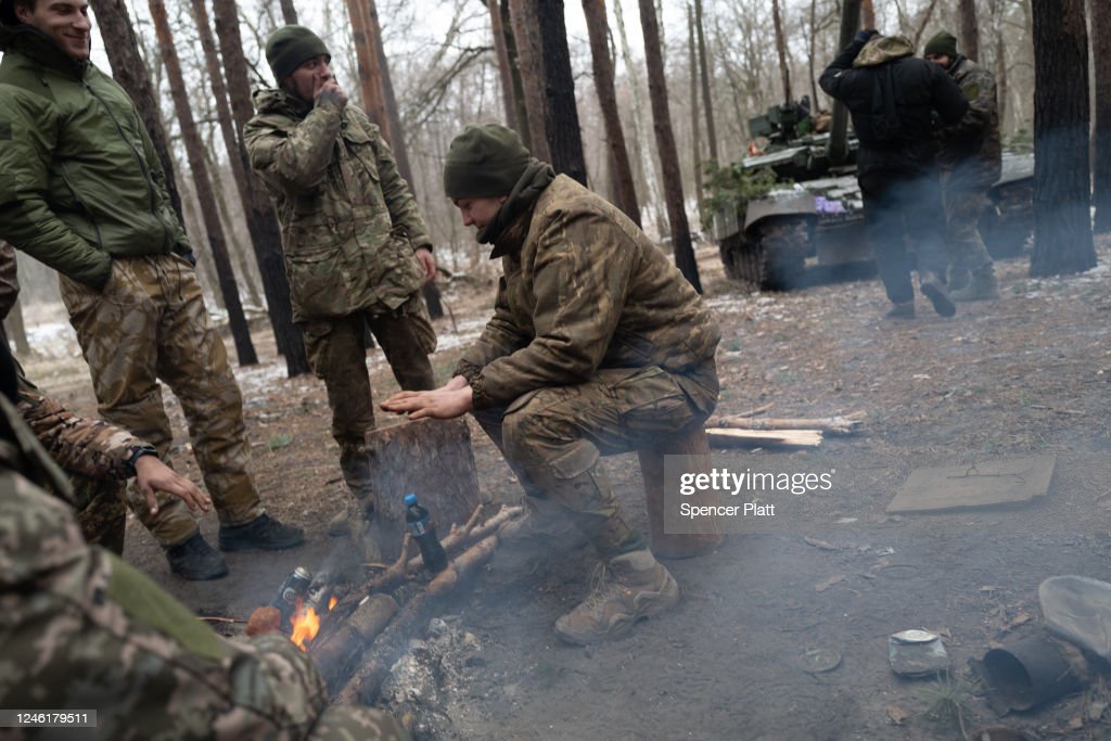 OUTSIDE KREMINNA, UKRAINE – JANUARY 12: Members of Ukraine’s 95th Air Assault Brigade defend an area near the front line of fighting on January 12, 2023 outside Kreminna, Ukraine. Kreminna, located on the western edge of the Luhansk region, has seen fierce fighting between Ukraine and the Russian forces who occupy it. The city lies on a major highway 25 kilometers to the northwest of Severodonetsk, which was captured by Russian forces last summer after a violent siege. Some Ukrainian officials contend KremiOUTSIDE KREMINNA, UKRAINE – JANUARY 12: A Ukrainian soldier chops wood at an area near the front line of fighting on January 12, 2023 outside Kreminna, Ukraine. Kreminna, located on the western edge of the Luhansk region, has seen fierce fighting between Ukraine and the Russian forces who occupy it. The city lies on a major highway 25 kilometers to the northwest of Severodonetsk, which was captured by Russian forces last summer after a violent siege. Some Ukrainian officials contend Kreminna is on the vergeOUTSIDE KREMINNA, UKRAINE – JANUARY 12: Members of Ukraine’s 95th Air Assault Brigade defend an area near the front line of fighting on January 12, 2023 outside Kreminna, Ukraine. Kreminna, located on the western edge of the Luhansk region, has seen fierce fighting between Ukraine and the Russian forces who occupy it. The city lies on a major highway 25 kilometers to the northwest of Severodonetsk, which was captured by Russian forces last summer after a violent siege. Some Ukrainian officials contend KremiOUTSIDE KREMINNA, UKRAINE – JANUARY 12: Members of Ukraine’s 95th Air Assault Brigade defend an area near the front line of fighting on January 12, 2023 outside Kreminna, Ukraine. Kreminna, located on the western edge of the Luhansk region, has seen fierce fighting between Ukraine and the Russian forces who occupy it. The city lies on a major highway 25 kilometers to the northwest of Severodonetsk, which was captured by Russian forces last summer after a violent siege. Some Ukrainian officials contend KremiOUTSIDE KREMINNA, UKRAINE – JANUARY 12: Ukrainian soldiers rest in an area near the front line of fighting on January 12, 2023 outside Kreminna, Ukraine. Kreminna, located on the western edge of the Luhansk region, has seen fierce fighting between Ukraine and the Russian forces who occupy it. The city lies on a major highway 25 kilometers to the northwest of Severodonetsk, which was captured by Russian forces last summer after a violent siege. Some Ukrainian officials contend Kreminna is on the verge of being recaptured. In late December, the head of the Luhansk regional military administration said in a tweet that Russian civilian authorities and local military command units had pulled back, adding that “the Russians understand that if they lose Kreminna, their entire line of defense will fall.” (Photo by Spencer Platt/Getty Images)