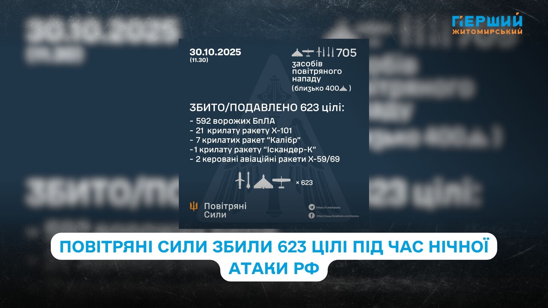 У ніч на 30 жовтня Росія здійснила масований комбінований удар по території України. Ворог атакував об’єкти критичної інфраструктури ракетами різних типів і сотнями ударних безпілотників.