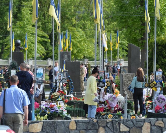 Сьогодні, 23 травня, на військовому цвинтарі в День Героїв вшанували пам’ять загиблих у війні. Загалом пролунало 372 імені полеглих Захисників. До могил поклали квіти та згадала кожного поіменно.