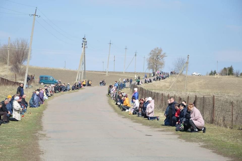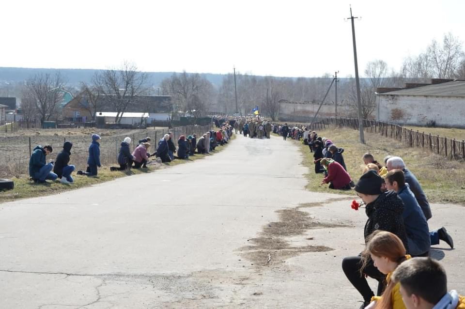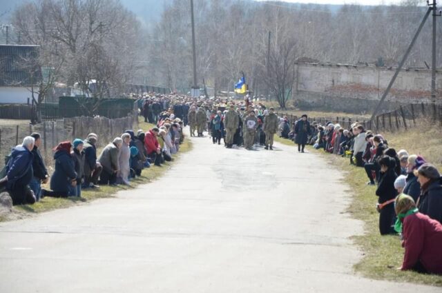 Люди утворили коридор пошани та на колінах проводжали загиблих Героїв.
