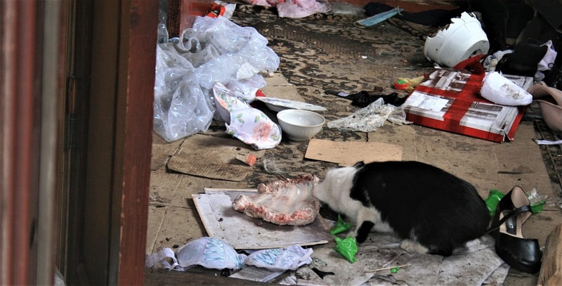 Центр села не впізнати, так купа різного сміття, а в одному з будинків, оселися коти, які їдять, все що окупанти викинули з холодильника.