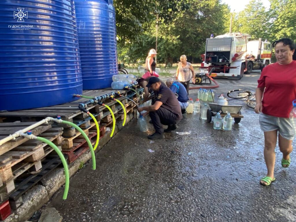 Другий тиждень житомирські рятувальники перебувають у м. Нікополь Дніпропетровської області. Там вони забезпечують місцевих водою. Адже внаслідок підриву росіянами Каховської ГЕС місто без питної води.