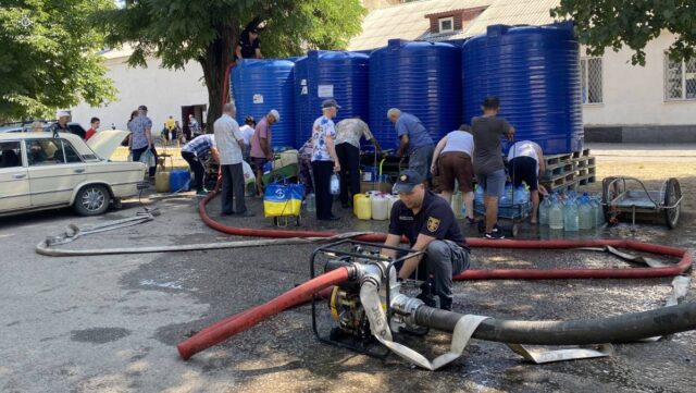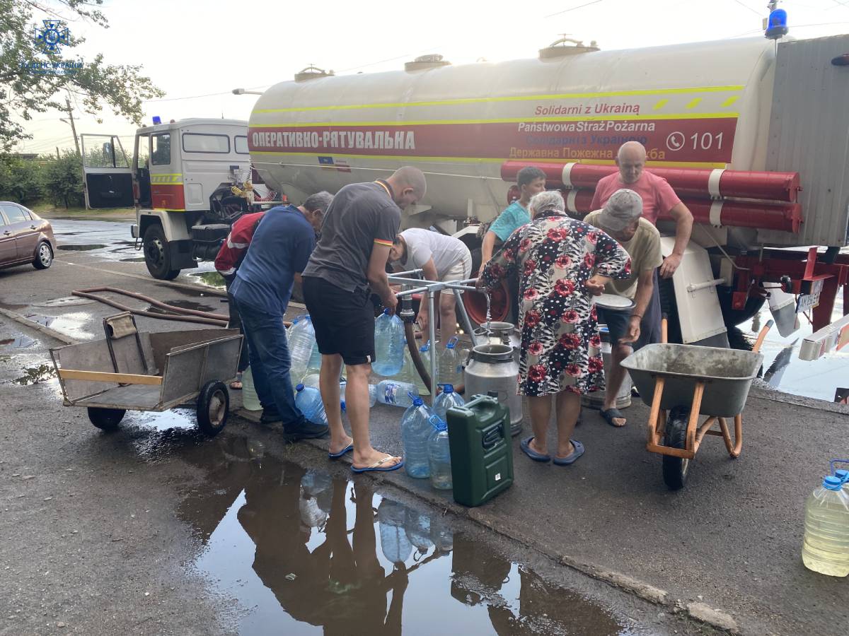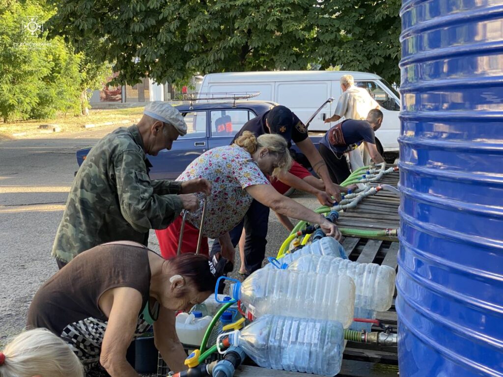 “Наші рятувальники від раннього ранку до пізнього вечора підвозять людям технічну воду. Автівка, яка може вивезти 18 т води, щодня курсує від водосховища до трьох різних точок Нікополя. Завдання різні – інколи хлопці працюють безпосередньо на роздачі води, інколи заливають в бочки для загального користування. Загалом вдається надати людям близько 130 м³ води за добу”, – повідомили в ДСНС.